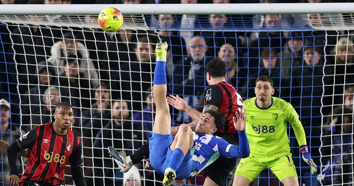 A stunning overhead kick from Charalampos Kostoulas in second-half stoppage time saw Brighton rescue a 1-1 draw against Bournemouth.