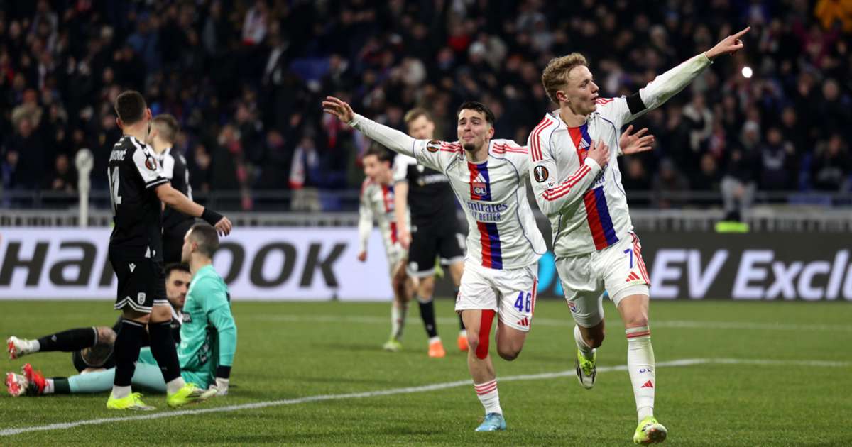 Lyon edged out Aston Villa and Midtjylland to top the Europa League's league-phase standings, with two late goals seeing off PAOK.